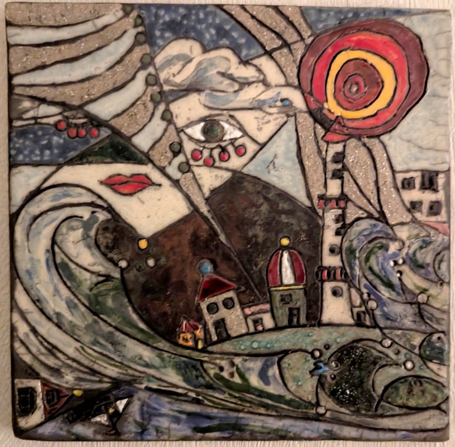 ceramic wall painting chaos in the city - anywhere 19.5cm x 20cm, 2023